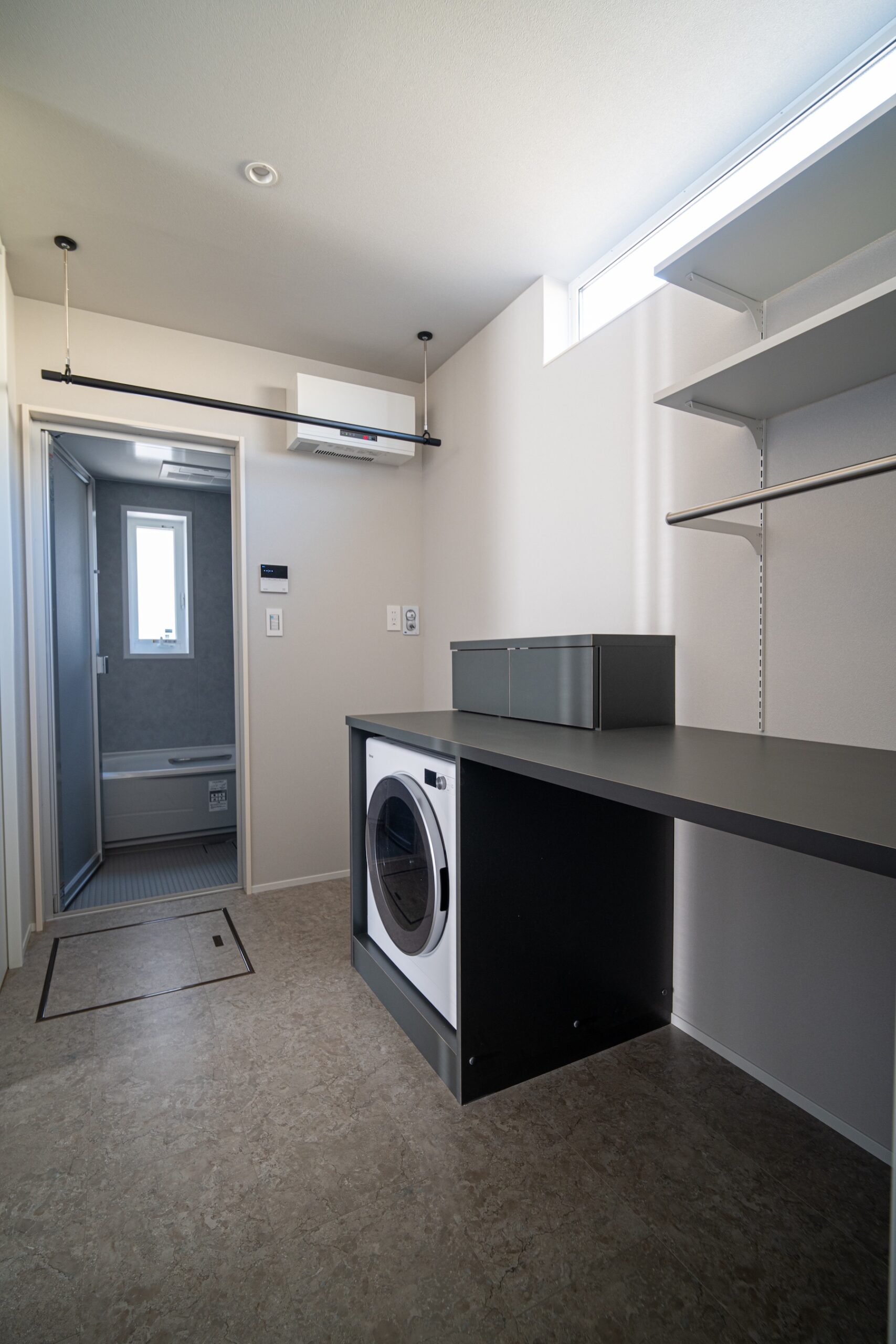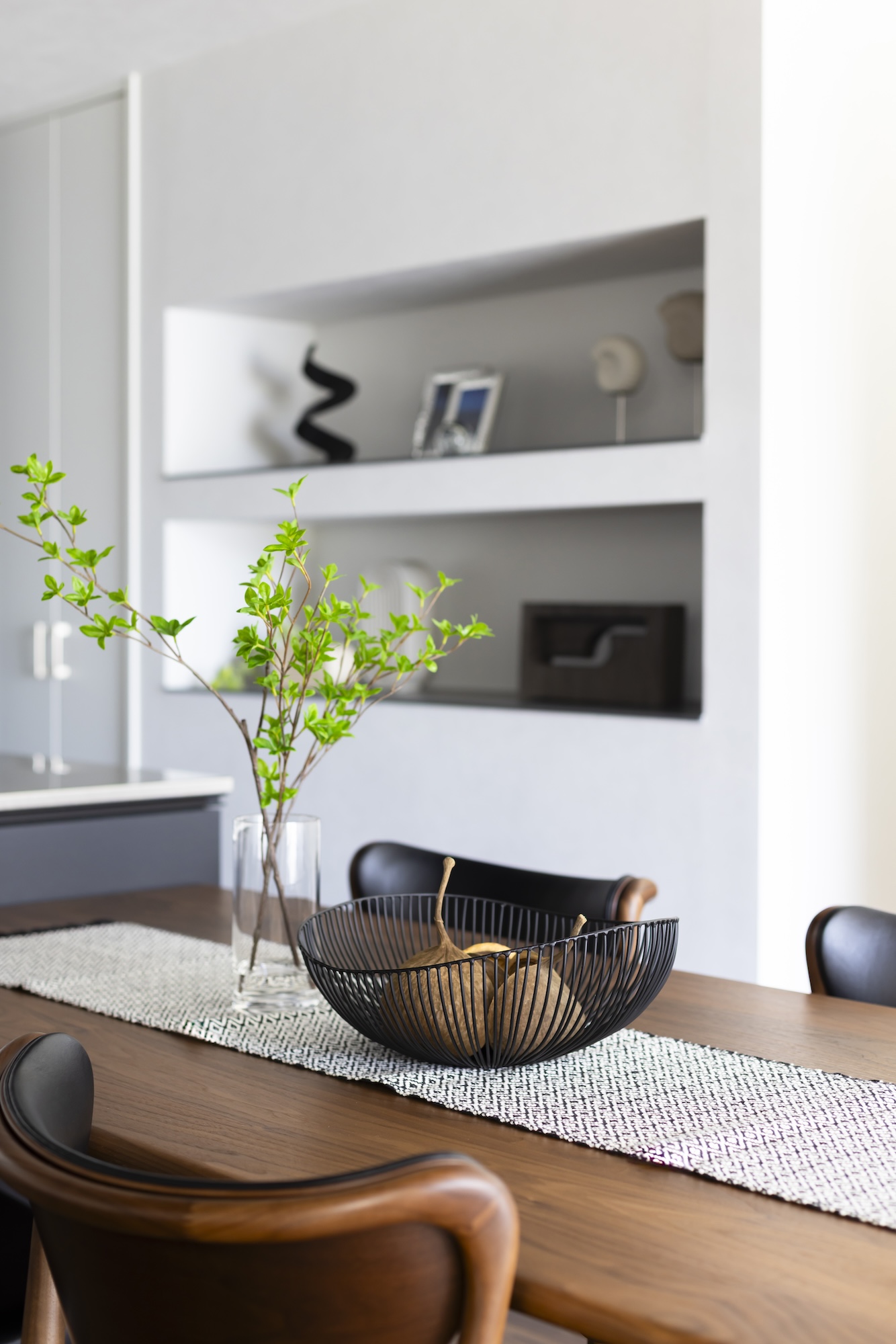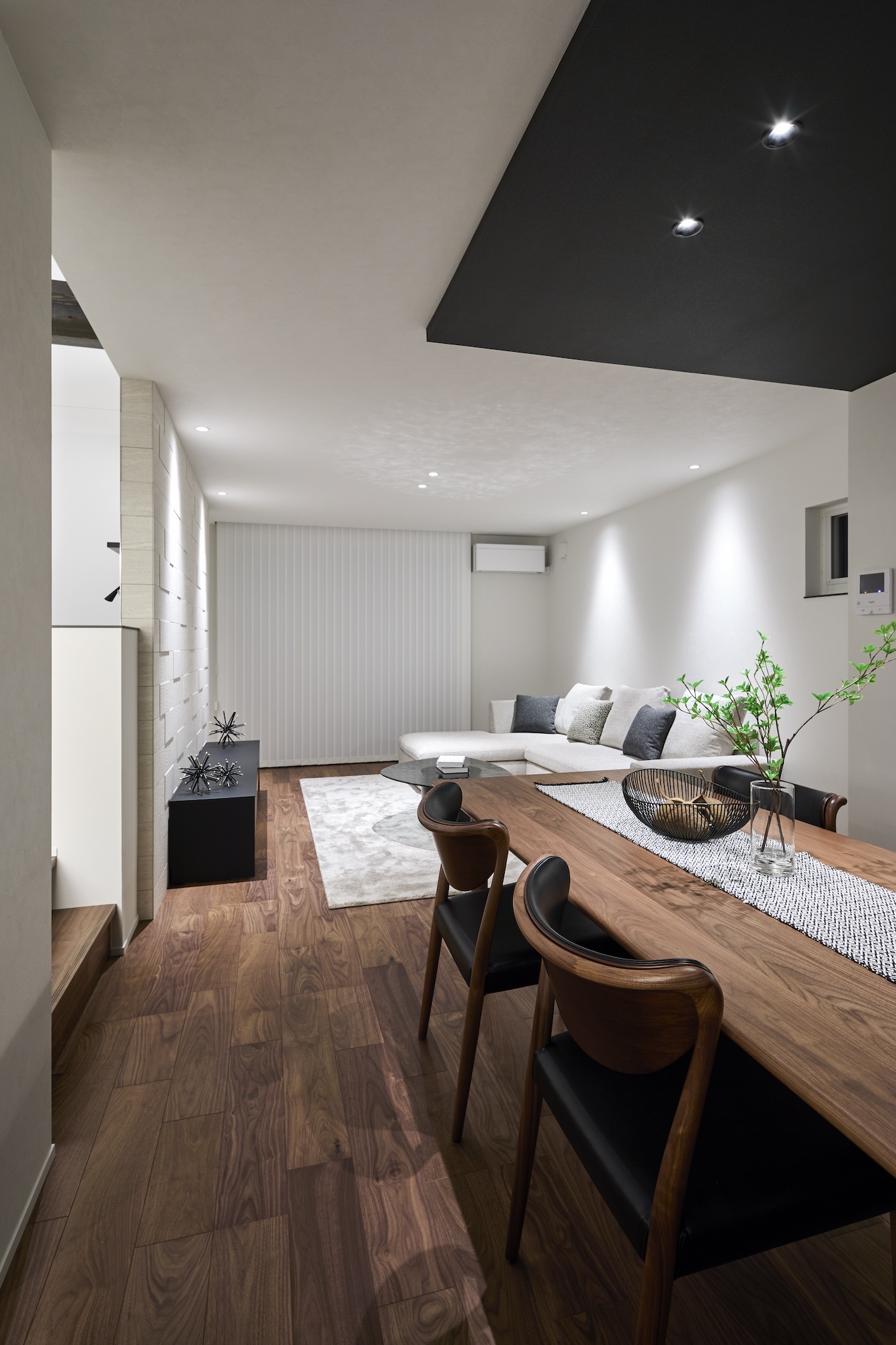 視覚的な美しさと、暮らしやすさを追求したオープンLDK。リビング、ダイニング、そして階段へと視線が抜ける開放的な設計は、家族の繋がりを感じさせます。モノトーンで統一された家具とインテリアは、細部にわたるこだわりを感じさせ、住まう人の個性を際立たせます。