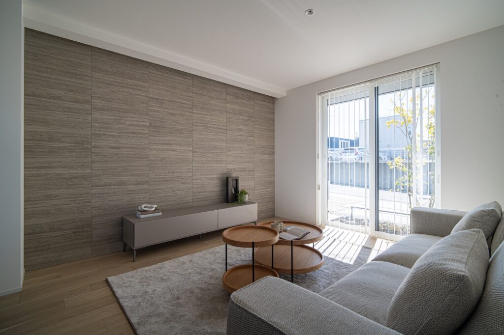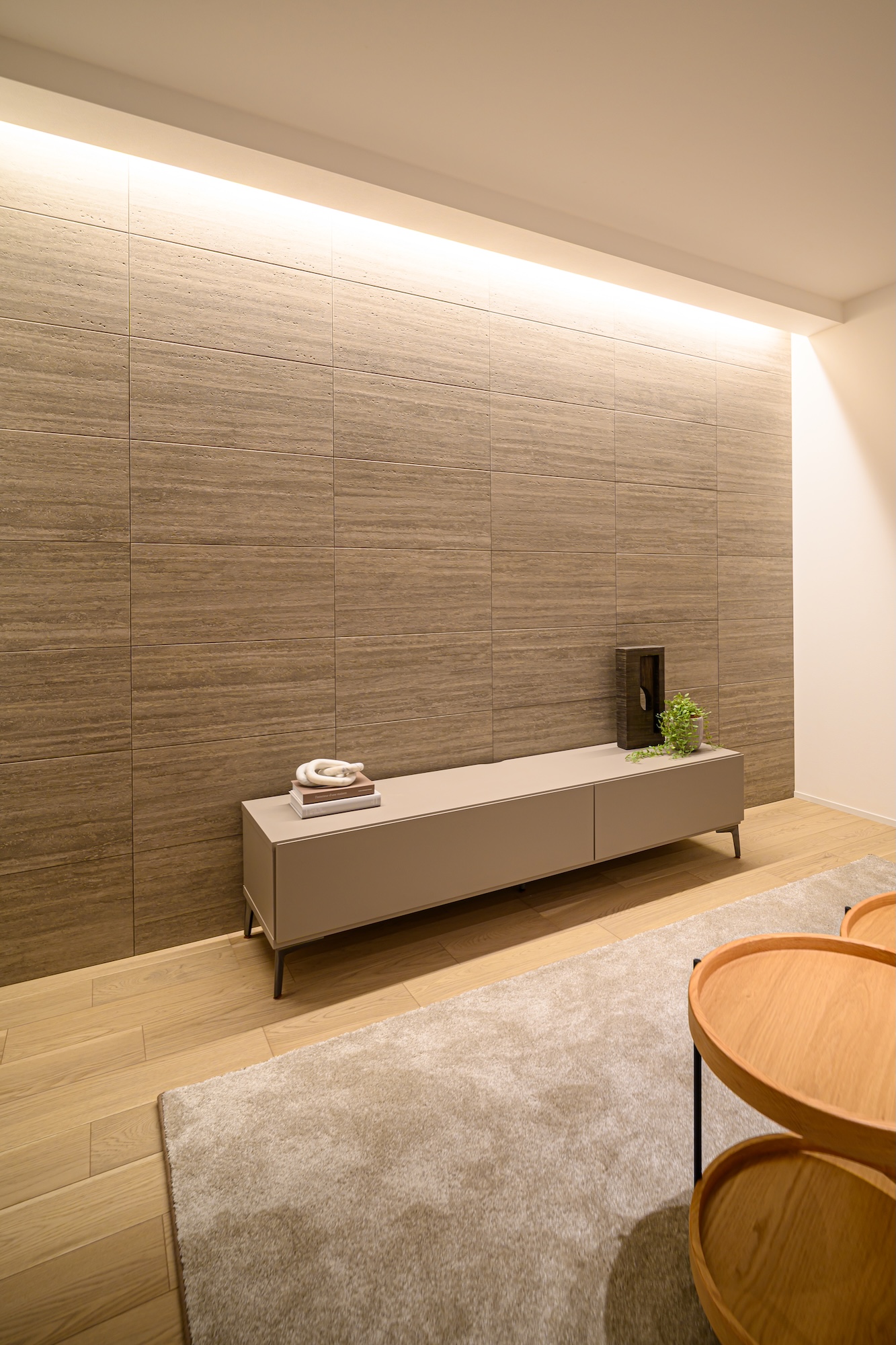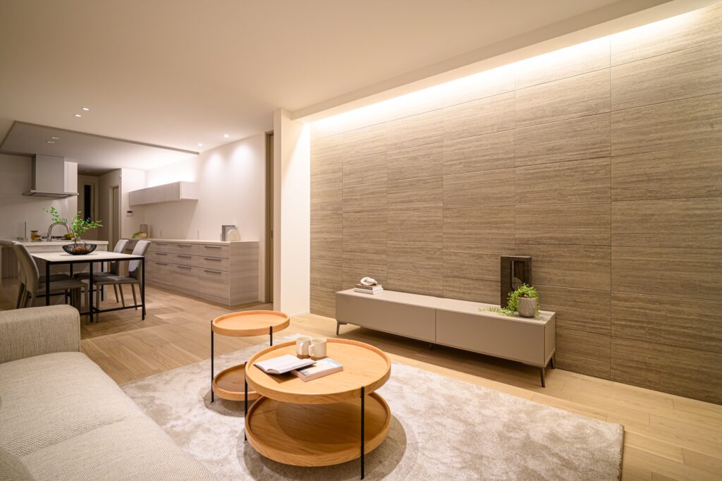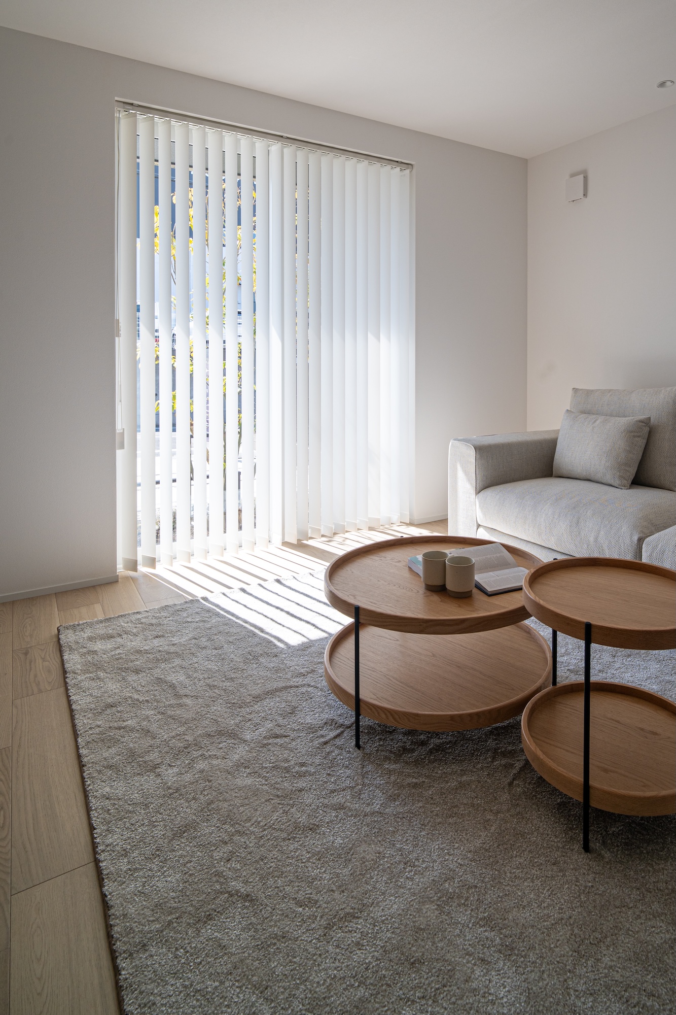 柔らかな光に包まれ、お気に入りのソファで過ごす至福のひととき。 写真では伝えきれない、空間の広がりと素材の温もりがここにはあります。